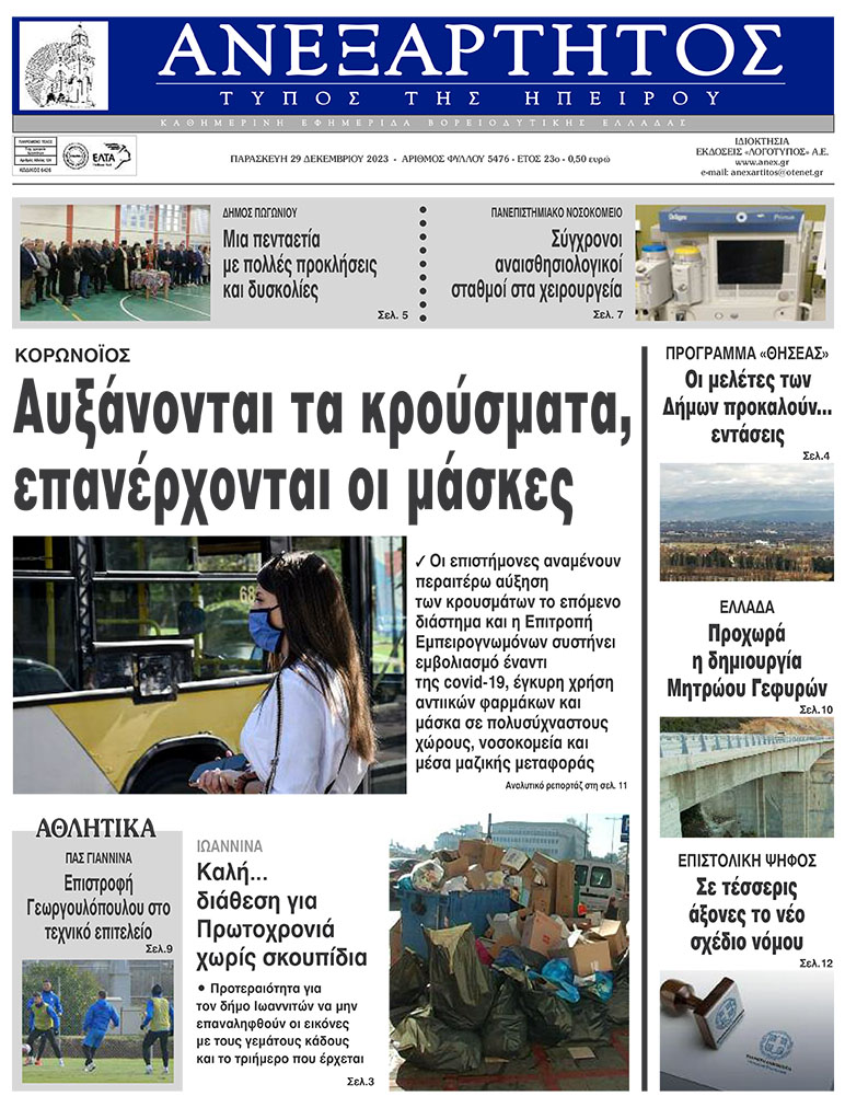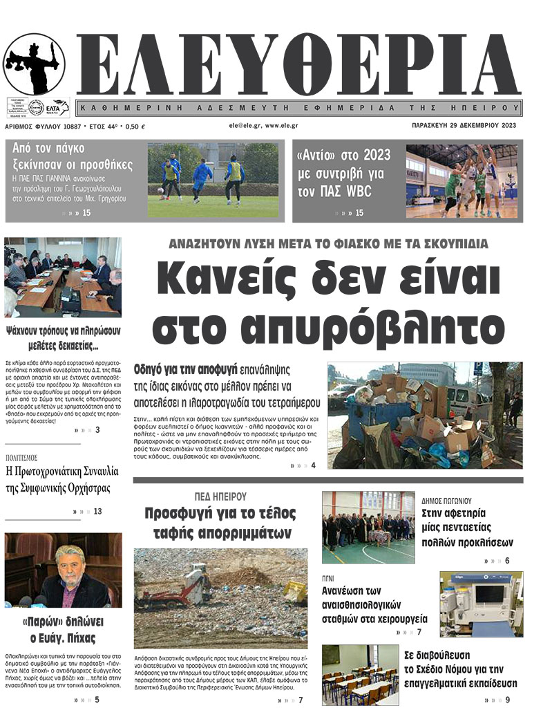Διαβάστε στα πρωτοσέλιδα των γιαννιώτικων εφημερίδων της Παρασκευής 29 Δεκεμβρίου