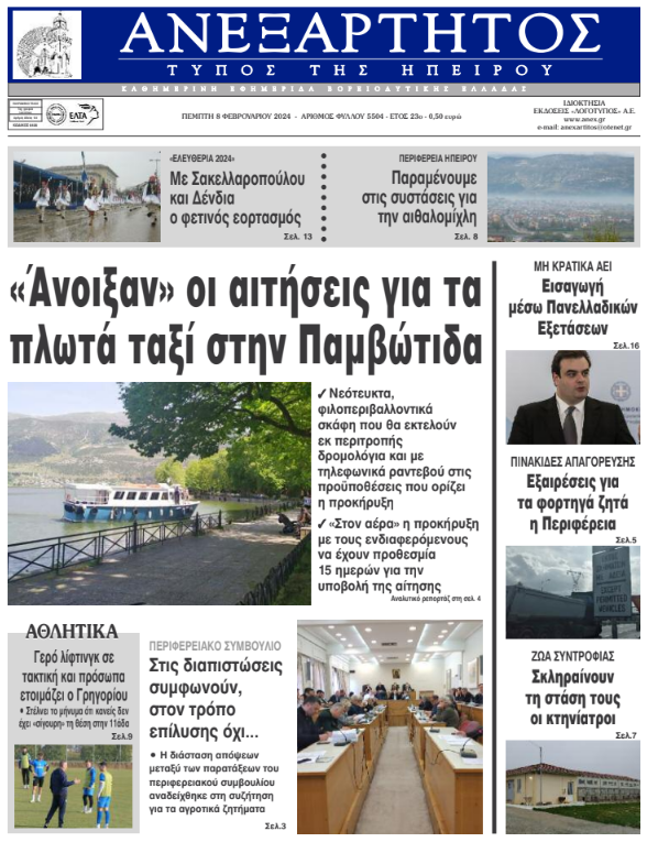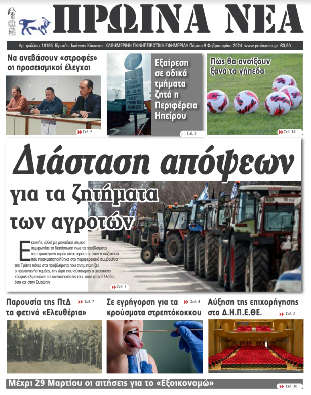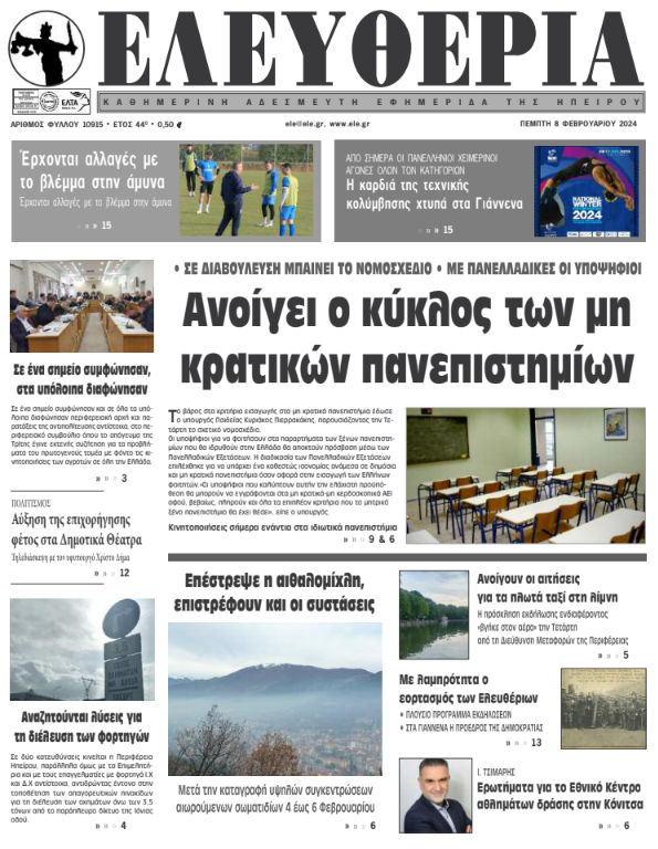 Διαβάστε στα πρωτοσέλιδα των γιαννιώτικων εφημερίδων της Πέμπτης 8 Φεβρουαρίου