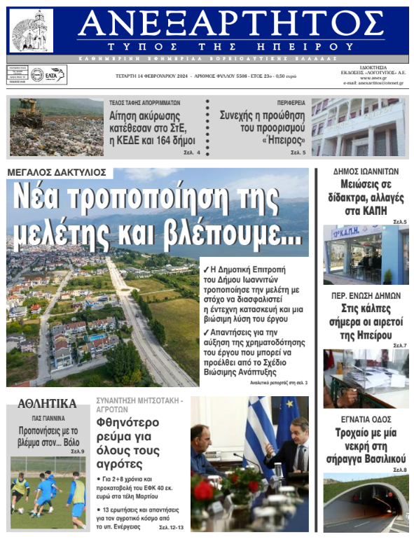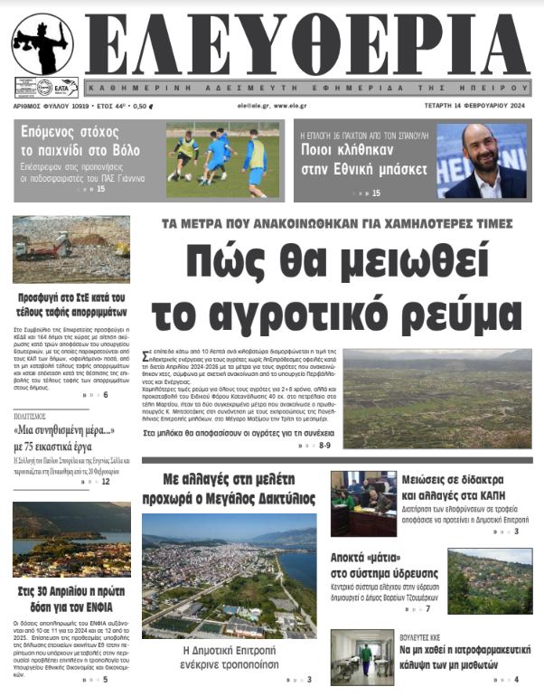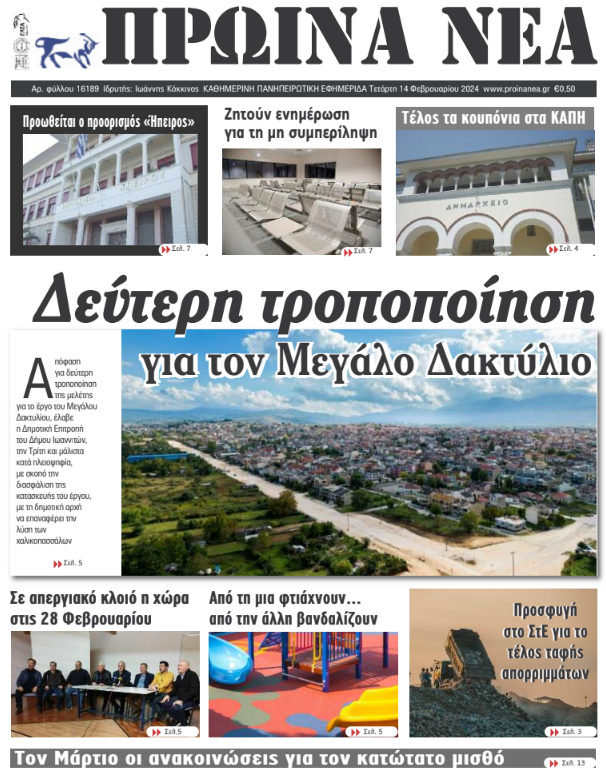 ΑρχικήΕΙΔΗΣΕΙΣΗΠΕΙΡΟΣ ΗΠΕΙΡΟΣ Τα πρωτοσέλιδα των γιαννιώτικων εφημερίδων 14.02.2024 0 FacebookTwitterWhatsAppEmailΤυπώνωViber Διαβάστε στα πρωτοσέλιδα των γιαννιώτικων εφημερίδων της Τετάρτης 14 Φεβρουαρίου TagsΓΙΑΝΝΙΩΤΙΚΕΣ ΕΦΗΜΕΡΙΔΕΣΠΡΩΤΟΣΕΛΙΔΑ FacebookTwitterWhatsAppEmailΤυπώνωViber Προηγούμενο άρθροΣυναντήσεις στον δρόμοΕπόμενο άρθροΣτις 30 Απριλίου η πρώτη δόση για τον ΕΝΦΙΑ ΣΧΕΤΙΚΑ ΑΡΘΡΑ Τα πρωτοσέλιδα των γιαννιώτικων εφημερίδων TOP STORIES 28.11.2025 Τα πρωτοσέλιδα των γιαννιώτικων εφημερίδων ΗΠΕΙΡΟΣ 27.11.2025 Τα πρωτοσέλιδα των γιαννιώτικων εφημερίδων ΗΠΕΙΡΟΣ 26.11.2025 Τα πρωτοσέλιδα των γιαννιώτικων εφημερίδων ΗΠΕΙΡΟΣ 25.11.2025 Τα πρωτοσέλιδα των γιαννιώτικων εφημερίδων ΗΠΕΙΡΟΣ 22.11.2025 Τα πρωτοσέλιδα των γιαννιώτικων εφημερίδων ΗΠΕΙΡΟΣ 21.11.2025 ΣΤΗΝ ΙΔΙΑ ΚΑΤΗΓΟΡΙΑ Διαγωνισμός για έργα ενεργειακής αναβάθμισης στο ΠΓΝΙ ΗΠΕΙΡΟΣ 28.11.2025 Εισροή νερού σε δύο χειρουργικές αίθουσες στο νοσοκομείο «Χατζηκώστα» ΗΠΕΙΡΟΣ 28.11.2025 Άρτα: Αλλοδαπός έκλεψε 850 ευρώ από ηλικιωμένο ΗΠΕΙΡΟΣ 28.11.2025 Κοινός τόπος η ανάγκη εξάλειψης της βίας κατά των γυναικών ΗΠΕΙΡΟΣ 28.11.2025 Νέες κατολισθήσεις στα Τζουμέρκα μετά την κακοκαιρία ΗΠΕΙΡΟΣ 28.11.2025 Εμφανίστηκε ξανά η εποχική λίμνη Βρέλλη ΗΠΕΙΡΟΣ 28.11.2025 ΜΗ ΧΑΣΕΤΕ Σήμερα η επιστροφή ενοικίου στους δικαιούχους Σήμερα η «Black Friday»: Τι πρέπει να προσέξετε στις αγορές σας Νέες κατολισθήσεις στα Τζουμέρκα μετά την κακοκαιρία Εμφανίστηκε ξανά η εποχική λίμνη Βρέλλη Επιδόματα και προσλήψεις στο συνέδριο δικαστικών υπαλλήλων ΔΗΜΟΦΙΛΗ Τα πρωτοσέλιδα των γιαννιώτικων εφημερίδων Νέα ηγεσία στη Ν.Ε. Ιωαννίνων του ΣΥΡΙΖΑ-Π.Σ Χονγκ Κονγκ: Στους 128 ανέρχονται οι νεκροί – Οργή για τη φονικότερη πυρκαγιά των τελευταίων 70 ετών Μητσοτάκης: Η ρευστή κατάσταση απαιτεί η Ευρώπη να ενηλικιωθεί Κομβικό παιχνίδι για τον ΠΑΣ Γιάννινα WBC απέναντι στον Παναθλητικό
