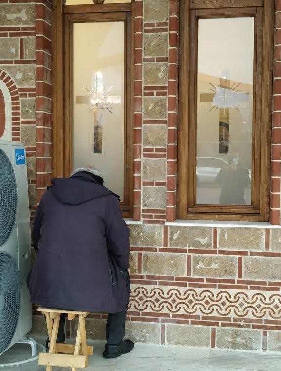 Εκτός των πιστών που εισήλθαν στους Ιερούς Ναούς, έχοντας δηλώσει τη συμμετοχή τους από τις προηγούμενες ημέρες, υπήρξαν και εκείνοι που παρέμειναν στους εξωτερικούς χώρους αυτών, παρακολουθώντας από απόσταση και βλέποντας από τα… παράθυρα, την Ακολουθία του αγιασμού.