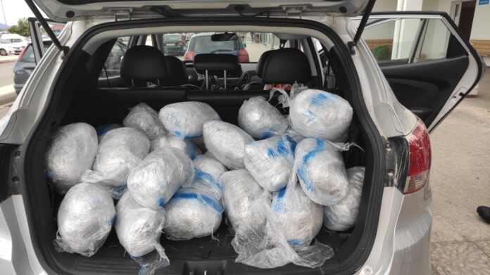 Εντός του αυτοκινήτου βρέθηκαν και κατασχέθηκαν 70 δέματα με ακατέργαστη κάνναβη, συνολικού βάρους 77 κιλών και 320 γραμμαρίων.