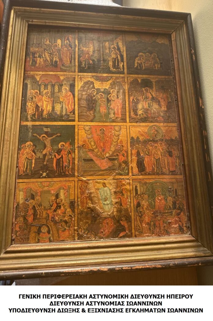 Οι συλλήψεις έγιναν στην περιοχή της Αθήνας, έπειτα από αξιοποίηση πληροφοριών και συντονισμένη επιχείρηση. Κατά την έρευνα που πραγματοποιήθηκε σε κατοικία ενός εκ των δύο συλληφθέντων, βρέθηκε θρησκευτική εικόνα που απεικονίζει σκηνές από το Δωδεκάορτο, φέρουσα την αναγραφή του έτους 1662.