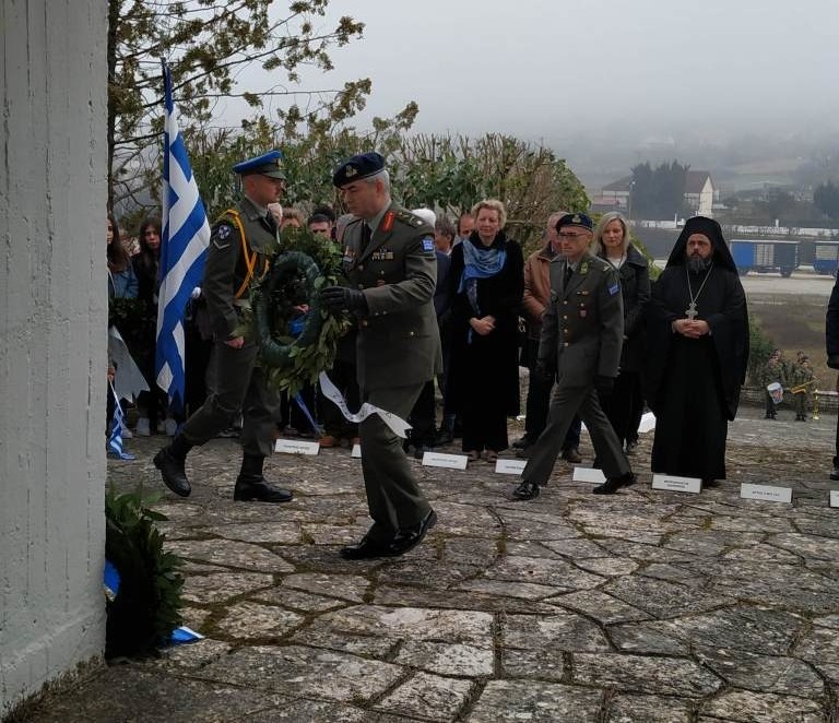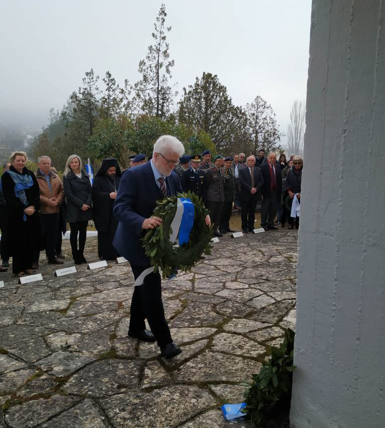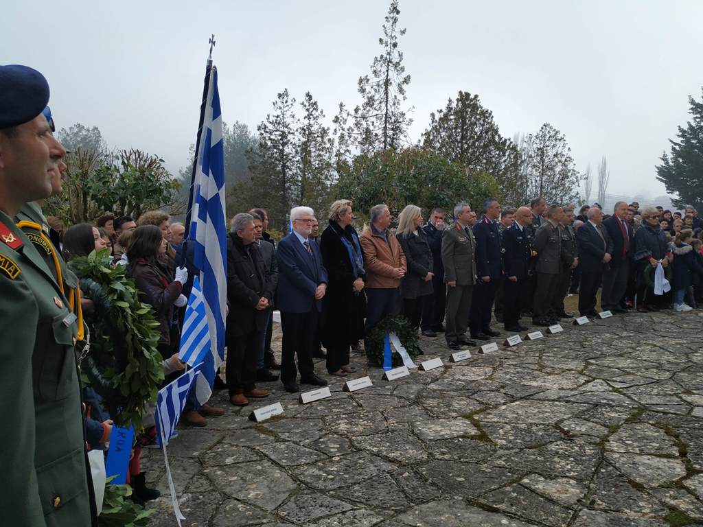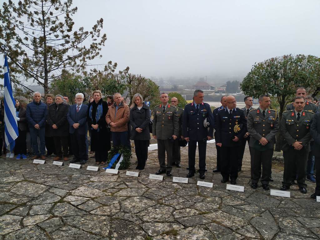 Το πρωί της Τετάρτης τελέστηκε επιμνημόσυνη δέηση και έγιναν καταθέσεις στεφάνων στον τύμβο Μπιζανομάχων, στο Μπιζάνι.