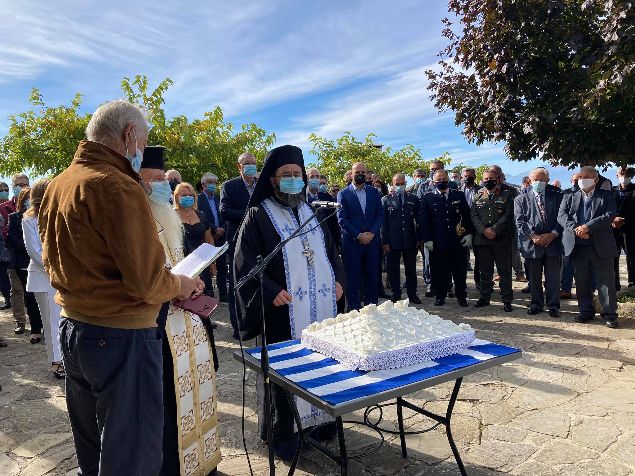 Το πρωί τελέστηκε επιμνημόσυνη δέηση στον Ιερό Ναό του Αγίου Γεωργίου και ακολούθησαν στο χώρο του μνημείου προσκλητήριο νεκρών και κατάθεση στεφάνων.