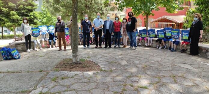 Με αφορμή την επίσκεψη και τις εργασίες αναβάθμισης του χώρου διένειμαν γλάστρες με λουλούδια και σακούλες ανακύκλωσης στους μαθητές του 2ου Νηπιαγωγείου που λειτουργεί στον ίδιο χώρο.