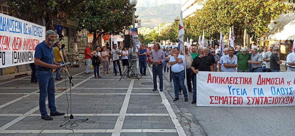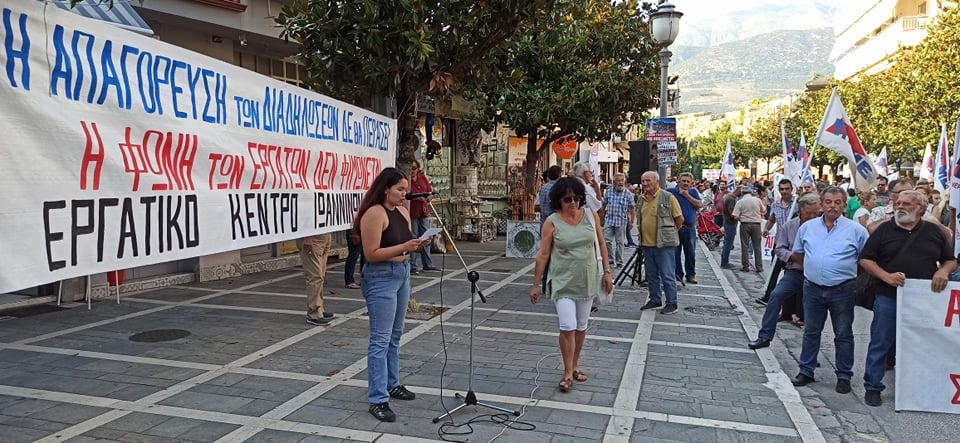 Στην κεντρική ομιλία της συγκέντρωσης ο πρόεδρος του Εργατικού Κέντρου Ιωαννίνων Νίκος Έξαρχος ανέδειξε ότι «ο νόμος τερατούργημα έρχεται να θωρακίσει την απρόσκοπτη κερδοφορία των επιχειρηματικών ομίλων μπροστά στην νέα καπιταλιστική κρίση, και ότι τα αντεργατικά μέτρα πάνε χέρι χέρι με την εργοδοτική τρομοκρατία και την καταστολή. Με οργανωμένη πειθαρχημένη απειθαρχία οι εργάτες με τα σωματεία θα ακυρώσουν στην πράξη, θα κάνουν κουρελόχαρτο το νόμο».