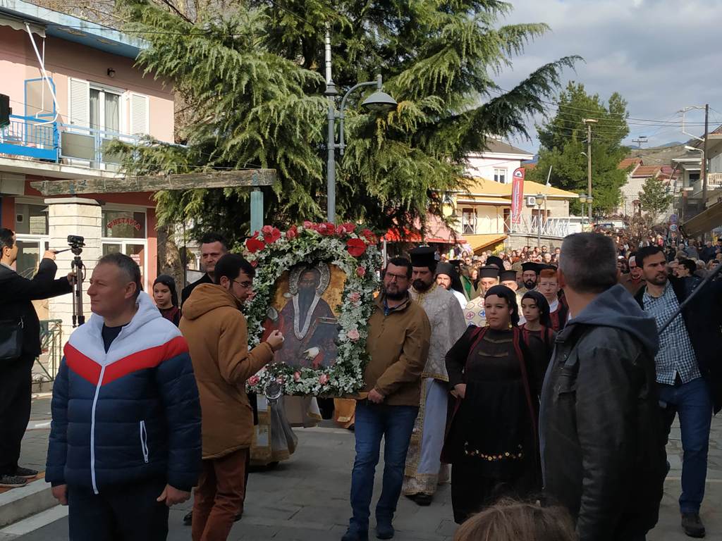 Στον Νέο Ιερό Ναό του Αγίου Χαραλάμπους τελέσθηκε Όρθρος και Πανηγυρική Θεία Λειτουργία, μετά το τέλος της οποίας ακολούθησε λιτάνευση του λειψάνου και της θαυματουργής Εικόνας του Αγίου.