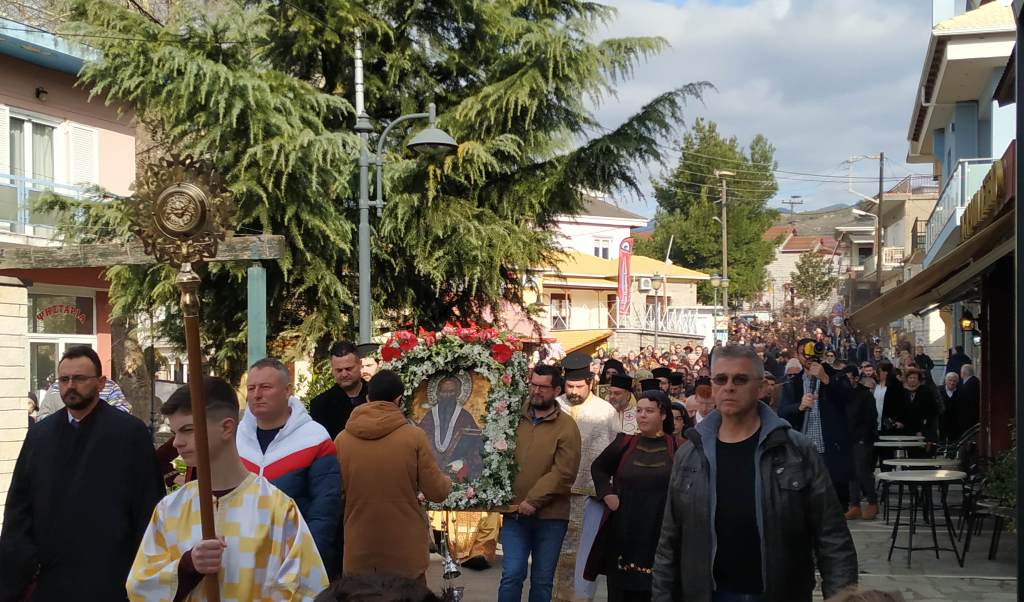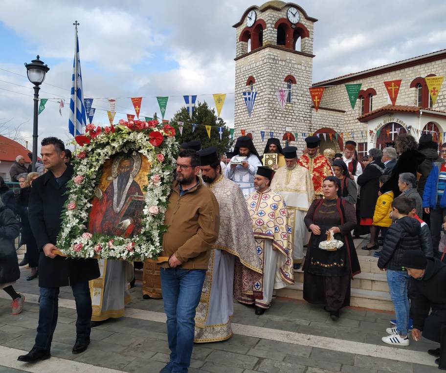 Στον Νέο Ιερό Ναό του Αγίου Χαραλάμπους τελέσθηκε Όρθρος και Πανηγυρική Θεία Λειτουργία, μετά το τέλος της οποίας ακολούθησε λιτάνευση του λειψάνου και της θαυματουργής Εικόνας του Αγίου.