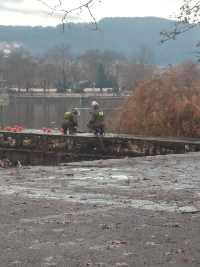 Με προσεκτικές κινήσεις όπως απαιτεί το πρωτόκολλο, πυροτεχνουργοί του Τάγματος Εκκαθαρίσεων Ναρκοπεδίων Ξηράς απομάκρυναν νωρίς το πρωί από τον προβλήτα του λιμανιού στο μόλο μία χειροβομβίδα που εντοπίστηκε στον πυθμένα της λίμνης κατά τη διάρκεια των εργασιών καθαρισμού που εξελίσσονται.