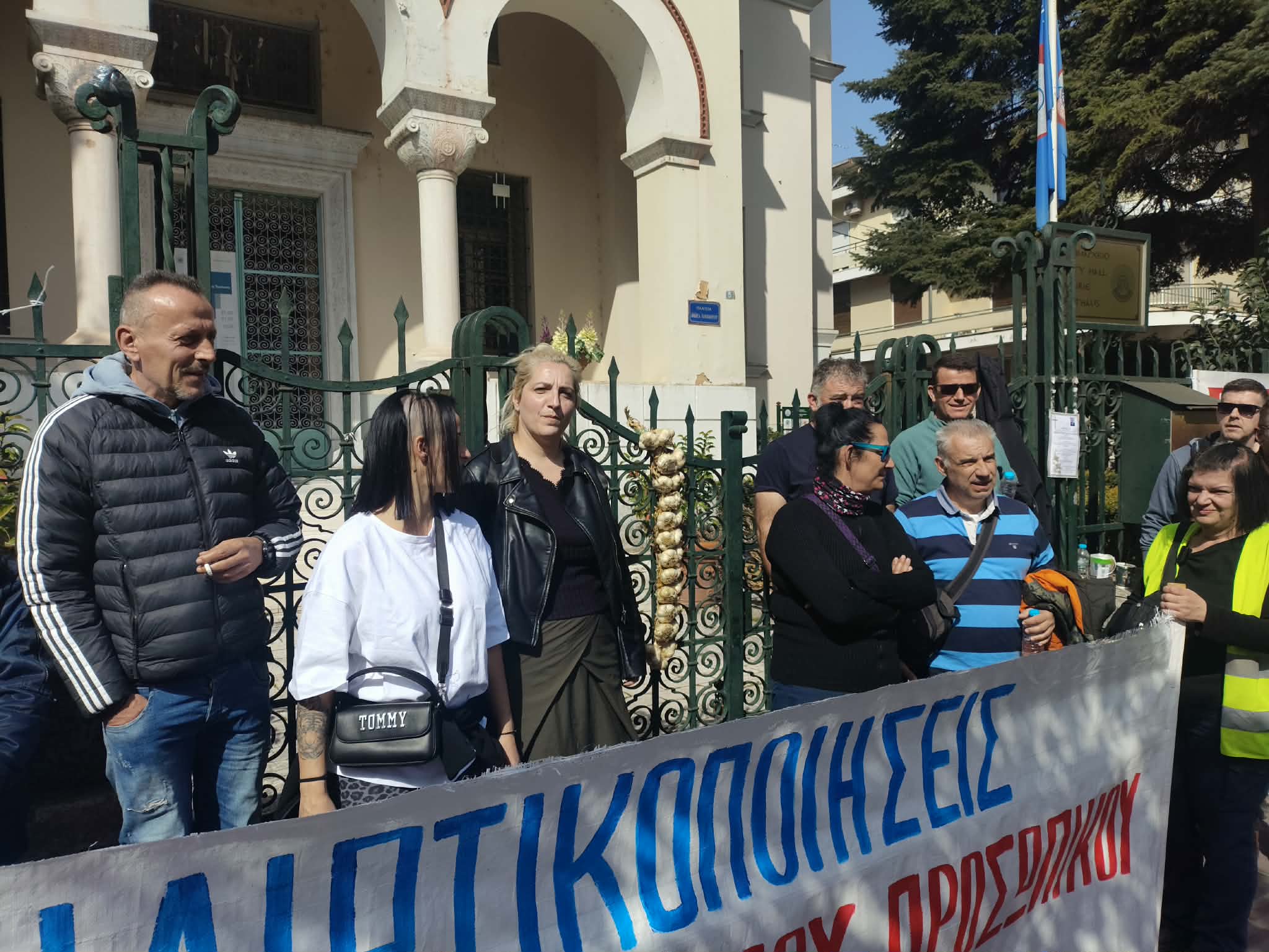 Οι εργαζόμενοι και χθες είχαν αποκλείσει την πόρτα και δεν επέτρεπαν την είσοδο, στα μέλη της Δημοτικής Επιτροπής, ενώ μετά και τις «εκτός τόπου και χρόνου» δηλώσεις του αντιδημάρχου Μάκη Χρυσοστόμου περί «ματιάσματος», οι εργαζόμενοι είχαν κρεμάσει και μια… αρμαθιά σκόρδα στα κάγκελα μπροστά από το δημαρχείο.