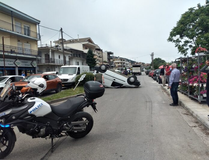 Τροχαίο ατύχημα σημειώθηκε το μεσημέρι της Πέμπτης στην οδό Παπανδρέου, με αποτέλεσμα την ανατροπή ενός οχήματος. Από το συμβάν τραυματίστηκαν δύο άτομα, ο οδηγός και ο συνεπιβάτης.