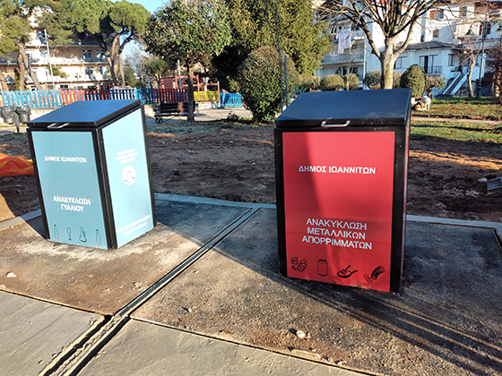 Στο πάρκο στο Γηροκομείο, από την πλευρά της οδού Κομνηνών, τοποθετήθηκαν και λειτουργούν εδώ και λίγες ημέρες οι νέοι κάδοι ανακύκλωσης, που συνθέτουν μία από τις 11 συνολικά Γωνιές Ανακύκλωσης που υλοποιείται από τον δήμο Ιωαννιτών.