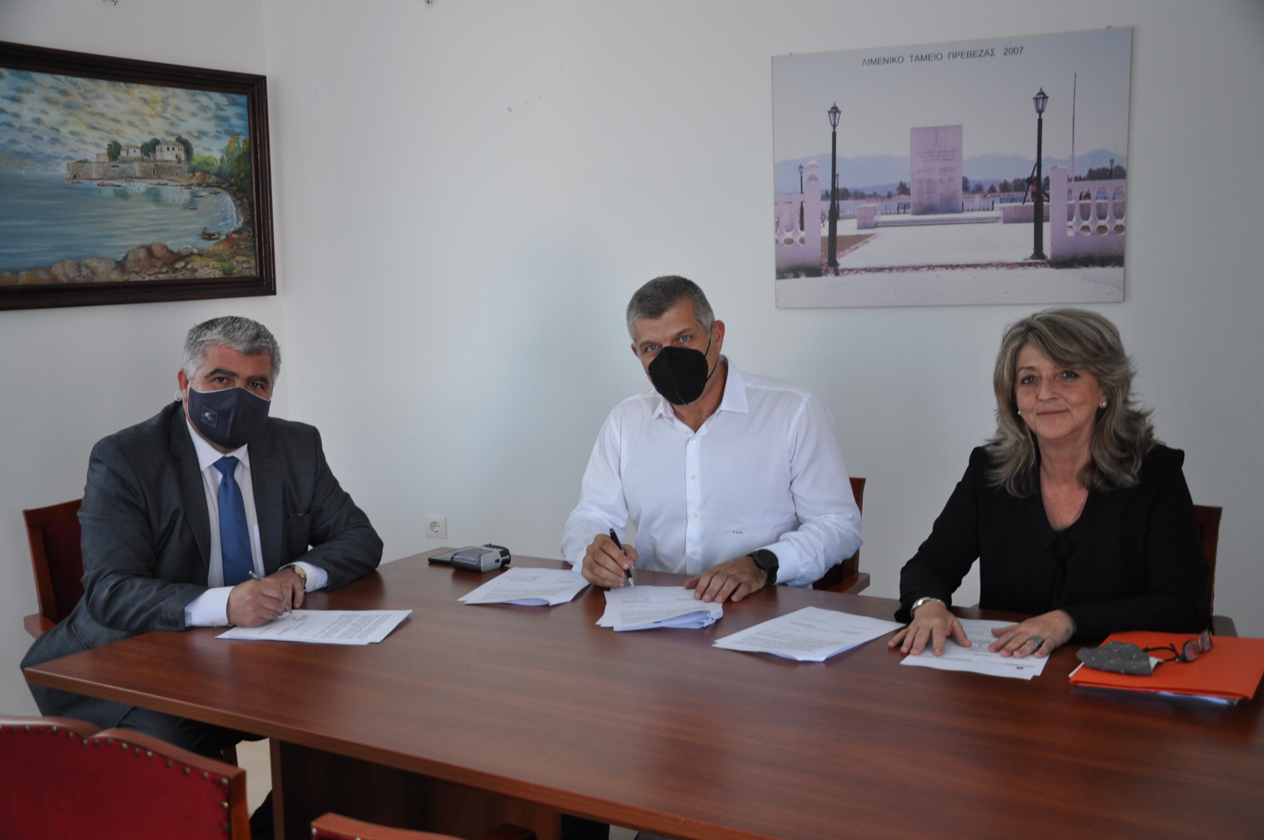 Υπεγράφη μεταξύ του Δημάρχου και Προέδρου του Δημ. Λιμενικού Ταμείου Πρέβεζας, Νικ. Γεωργάκου και Π. Κωσταντίνου, Προέδρου και Διευθύνοντος Συμβούλου της αναδόχου εταιρείας “ΑΡΧΙΜΗΔΗΣ ΑΤΕ”, παρουσία της Δ/ντριας Τ.Υ του Δήμου, Κ. Μωραΐτη η σύμβαση του μεγάλου έργου: «Επισκευή κρηπιδωμάτων παράλιου μετώπου Πρέβεζας».