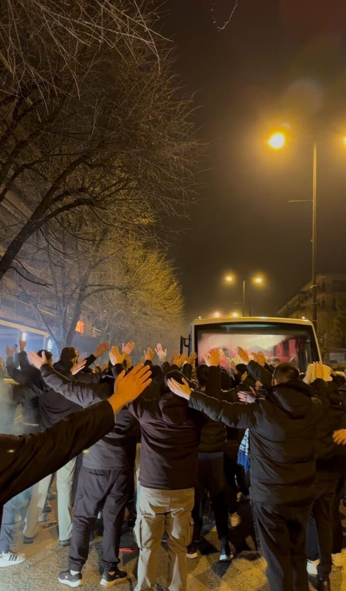 Λίγο πριν τις έξι τα ξημερώματα δεκάδες φίλοι του ΠΑΣ ΓΙΑΝΝΙΝΑ υποδέχθηκαν στο ύψος της Ζωσιμαίας Ακαδημίας την αποστολή της ομάδας μπάσκετ που πάλεψε στα ίσα στον τελικό του Κυπέλλου απέναντι στον Ολυμπιακό διεκδικώντας μέχρι το τέλος το τρόπαιο.