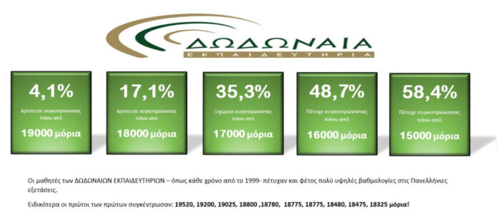 Πολύ υψηλές βαθμολογίες πέτυχαν μαθητές των Δωδωναίων Εκπαιδευτηρίων στις Πανελλήνιες Εξετάσεις για μία ακόμα φορά