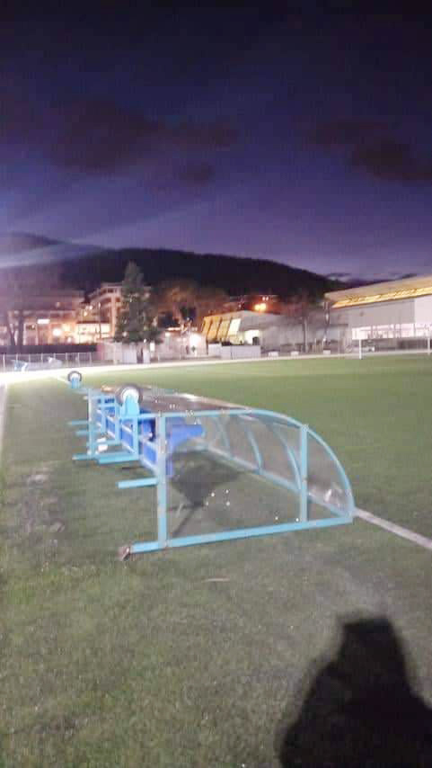 Ωστόσο, από τους δυνατούς βοριάδες δεν γλίτωσαν, όπως φαίνεται και στις φωτογραφίες που σήμερα δημοσιεύουμε, ούτε οι πάγκοι των ομάδων, στο ανοιχτό γήπεδο ποδοσφαίρου της Λιμνοπούλας.