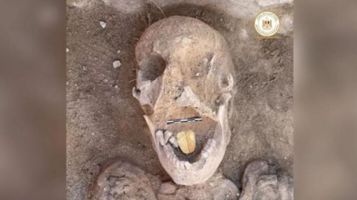 Οι ερευνητές εκτιμούν ότι η χρυσή γλώσσα τοποθετήθηκε για να διασφαλίσει ότι ο νεκρός θα μπορεί να μιλάει και στη μεταθανάτιο ζωή εάν συναντούσε τον Όσιρι, τον θεό του Κάτω Κόσμου, όπως ανακοίνωσε το υπουργείο αρχαιοτήτων της Αιγύπτου.