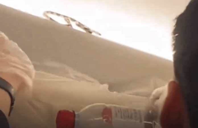 Βίντεο που αναρτήθηκε στα social media δείχνει αεροσυνοδό να πιάνει το φίδι. Αρχικά, προσπάθησε να το πιάσει με ένα πλαστικό μπουκάλι. Όταν δεν τα κατάφερε, έσπρωξε με το μπουκάλι το φίδι και το έριξε μέσα σε μια πλαστική σακούλα.