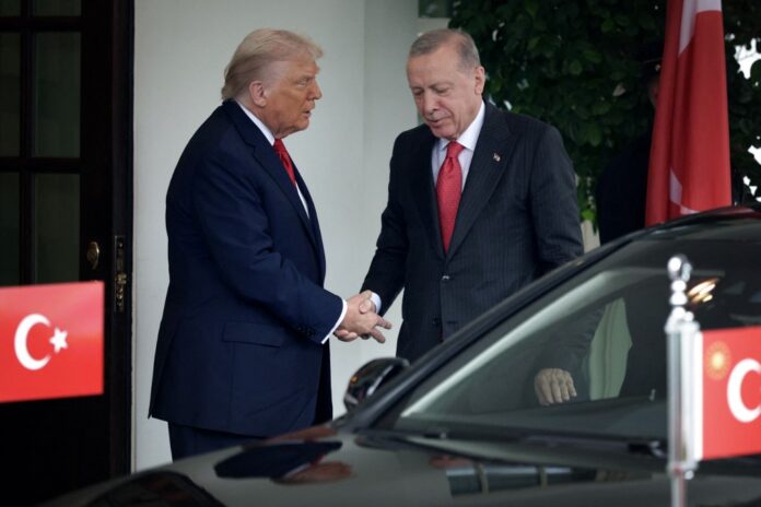 Μετά από έξι χρόνια απουσίας από την Ουάσινγκτον, ο Ρετζέπ Ταγίπ Ερντογάν συναντήθηκε με τον Αμερικανό Πρόεδρο Ντόναλντ Τραμπ στον Λευκό Οίκο, σε μια συνάντηση που χαρακτηρίστηκε «καθοριστική». Οι δύο ηγέτες, καθισμένοι στο Οβάλ Γραφείο, αντάλλαξαν φιλοφρονήσεις και παρουσίασαν μια εικόνα στενής συνεργασίας, με τον Τραμπ να αποκαλεί τον Τούρκο ομόλογό του «σκληρό άνδρα» και «φίλο».