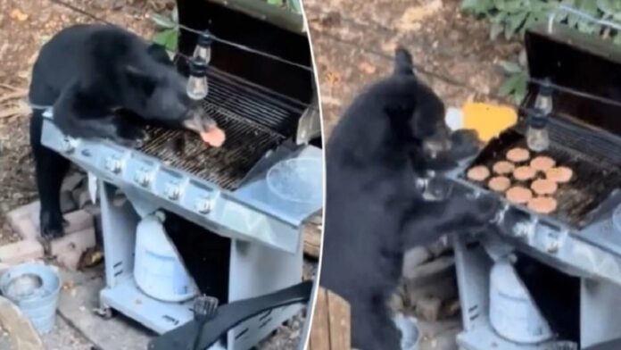 Προφανώς, η πεινασμένη αρκούδα βρήκε την ευκαιρία, την ώρα που οι ιδιοκτήτες είχαν αφήσει τα μπιφτέκια να ψήνονται μόνα τους, χωρίς να φανταστούν αυτή την εξέλιξη.