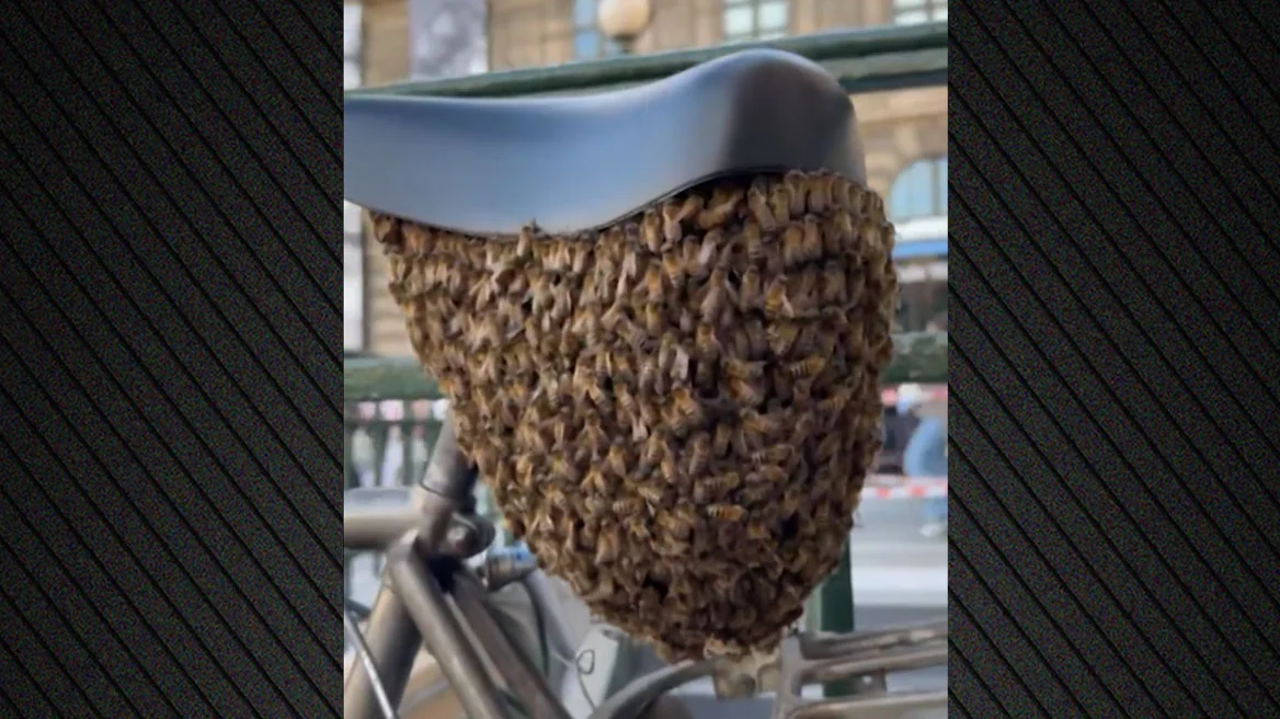 Σε βίντεο που κάνει τον γύρο του διαδικτύου φαίνεται η στιγμή που οι μέλισσες έχουν δημιουργήσει μια τεράστια φωλιά κάτω ακριβώς από τη σέλα του ποδηλάτου έξω από σταθμό του μετρό κοντά στην περιοχή του Λούβρου.