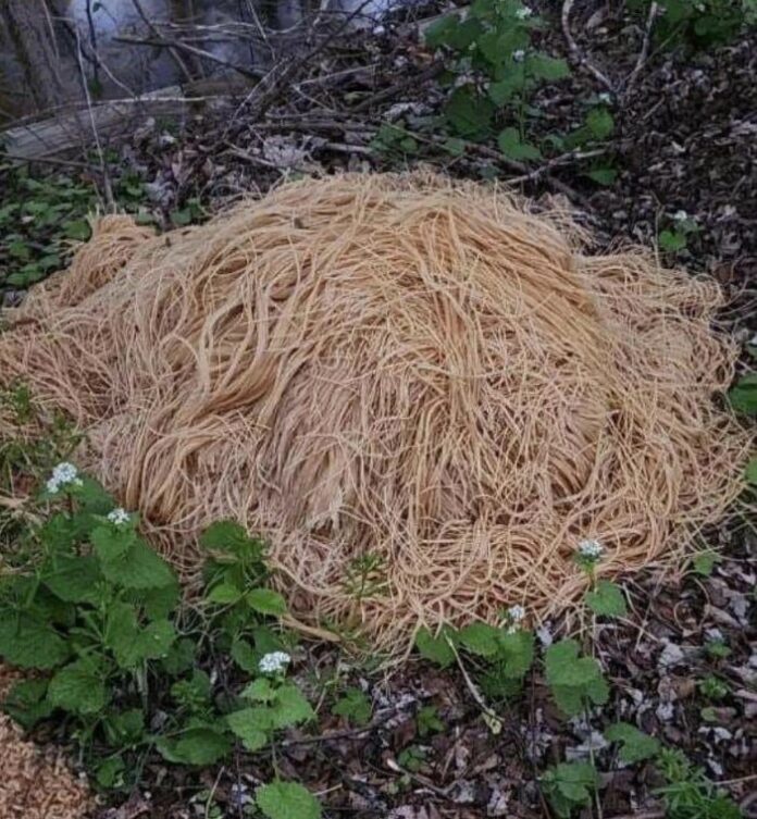Εκατοντάδες κιλά μαγειρεμένων ζυμαρικών εμφανίστηκαν κατά μήκος μιας κοίτης μικρού ποταμού σε δάσος του Νιουτ Τζέρσεϊ των ΗΠΑ την περασμένη εβδομάδα.