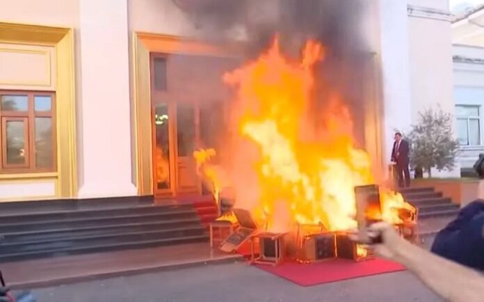 Επεισόδια σημειώθηκαν τη Δευτέρα στο κοινοβούλιο της Αλβανίας, όπου βουλευτές της αντιπολίτευσης, διαμαρτυρόμενοι για την καταδίκη σε ποινή φυλάκισης συναδέλφου τους, έβαλαν φωτιά σε καθίσματα που συγκέντρωσαν στα σκαλιά του κτιρίου.