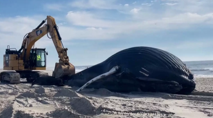 Μια αρσενική μεγάπτερη φάλαινα ξεβράστηκε στην παραλία Lido Beach, στην πόλη Hempstead της Νέας Υόρκης, το πρωί της Δευτέρας (30 Ιανουαρίου).