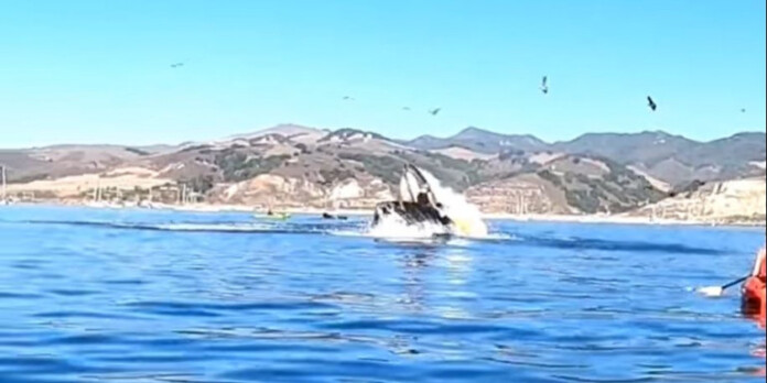 Η στιγμή που η φάλαινα καταβροχθίζει τις καγιάκερ