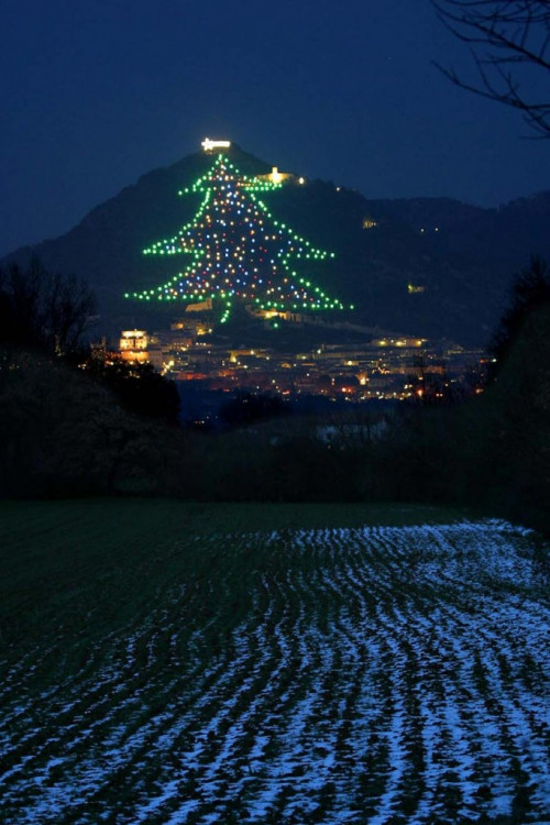 Το «μεγαλύτερο χριστουγεννιάτικο δέντρο στον κόσμο» άναψε όπως κάθε χρόνο τα λαμπάκια του στις πλαγιές του Monte Ingino, με θέα τη μεσαιωνική πόλη Gubbio στην Ιταλία.