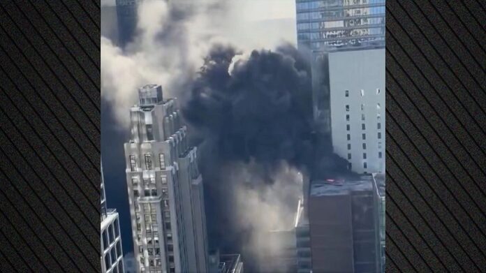Βίντεο από το σημείο της πυρκαγιάς αποτυπώνουν πυκνούς μαύρους καπνούς να αναβλύζουν στον ουρανό από την οροφή ενός πολυώροφου κτιρίου στην East 43rd Street, μεταξύ της 5ης Λεωφόρου και της Madison Avenue.