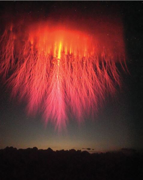 Κατά τη διάρκεια «μιας αποστολής καταδίωξης καταιγίδων», όπως γράφει το National Geographic, στο Big Bend National Park του Τέξας, «ο φωτογράφος Paul Smith αποτύπωσε αυτό που οι επιστήμονες αποκαλούν “παροδικό φωτεινό φαινόμενο” (TLE), δηλαδή μια σύντομη ηλεκτρική λάμψη πάνω από τα σύννεφα της καταιγίδας, που μπορεί να διαρκέσει λιγότερο ακόμη και από ένα χιλιοστό του δευτερολέπτου».