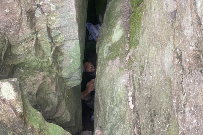 Φωτογραφίες που μοιράστηκε η υπηρεσία ασθενοφόρων στο Facebook δείχνουν τη γυναίκα να κρέμεται ανάποδα από τα πόδια της ανάμεσα στους βράχους, ενώ οι διασώστες εργάζονταν για να σταθεροποιήσουν την περιοχή και να την απελευθερώσουν. Παρά τις πολλές ώρες που πέρασε παγιδευμένη, υπέστη μόνο μικροτραυματισμούς και γρατζουνιές.