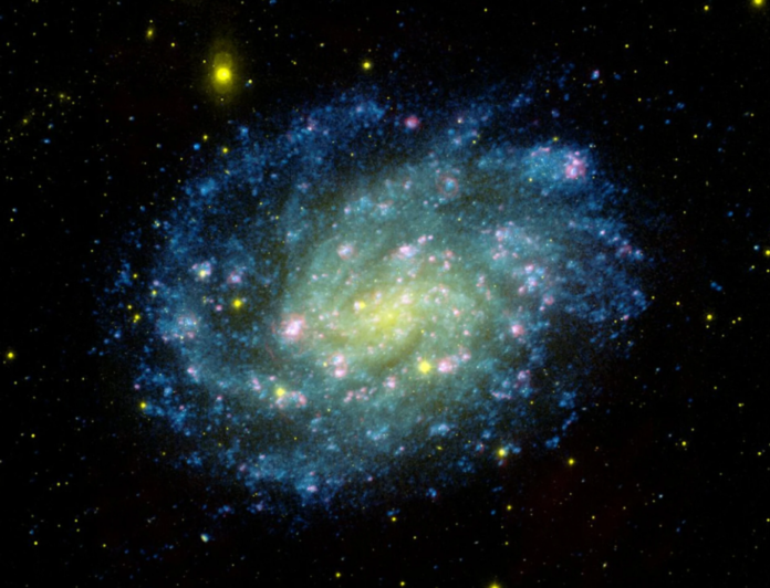 Ο Διαστημικός Οργανισμός είπε «αντίο» στον «βασιλιά» με φωτογραφία ενός σπειροειδούς γαλαξία στον αστερισμό Sculptor, ο οποίος φέρει τα χρώματα της Βραζιλίας (κίτρινο και μπλε).