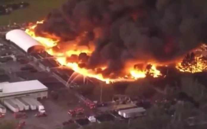 🚨#BREAKING: Firefighters are battling a massive 5 acres warehouse fire with potential hazardous fumes ⁰⁰📌 #Kissimmee l #Florida ⁰