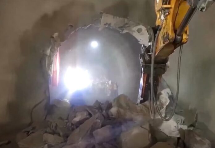 Οι εργάτες διέσπασαν την Πέμπτη το τελευταίο, λεπτό στρώμα βράχου για την ολοκλήρωση μίας υπόγειας σήραγγας