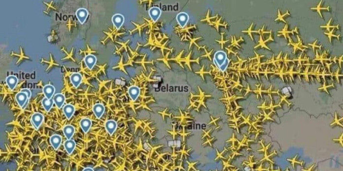 Ο πρόεδρος του Ευρωπαϊκού Συμβουλίου, Σαρλ Μισέλ, ανέβασε στο twitter μία εικόνα από γνωστή εφαρμογή που καταγράφει τις πτήσεις των αεροσκαφών. Σε αυτή φαίνεται ξεκάθαρα πως ενώ σε όλη την Ευρώπη βρίσκονται σε εξέλιξη πτήσεις, πάνω από τη Λευκορωσία δεν πετάει κανένα αεροσκάφος. Μάλιστα, ο Σαρλ Μισέλ συνοδεύει τη φωτογραφία με το σχόλιο «Η Ευρώπη εν δράσει».