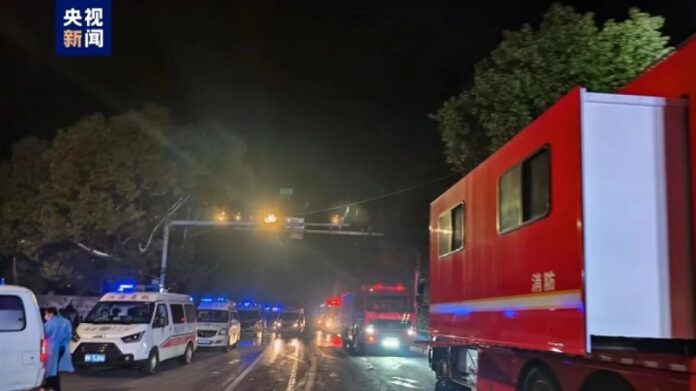 Πυκνός μαύρος καπνός υψωνόταν από καταστήματα που βρίσκονται στο επίπεδο του οδοστρώματος και έπνιγε τα γύρω κτίρια, όπως φάνηκε σε βίντεο που αναρτήθηκε στην πλατφόρμα μέσων κοινωνικής δικτύωσης Weibo.