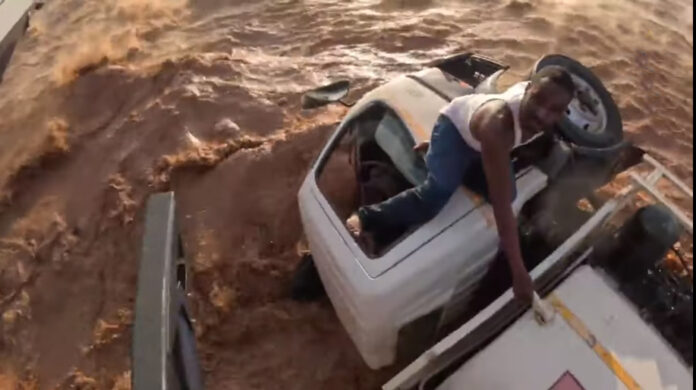 Ο φορτηγατζής διέσχιζε μια γέφυρα πάνω από τον ποταμό Γκαλάνα στην Κένυα, όταν ξαφνικά χτυπήθηκε από μια αστραπιαία πλημμύρα, μετά από έντονες βροχοπτώσεις.