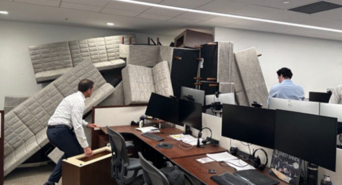 Τρομακτικές φωτογραφίες δείχνουν εργαζόμενους της Blackstone να οχυρώνουν την πόρτα του γραφείου τους με έπιπλα, καθώς ο ένοπλος Σέιν Ταμούρα διέσχιζε το κτήριο στο Midtown όπου στεγάζονται τα κεντρικά της εταιρείας το βράδυ της Δευτέρας.
