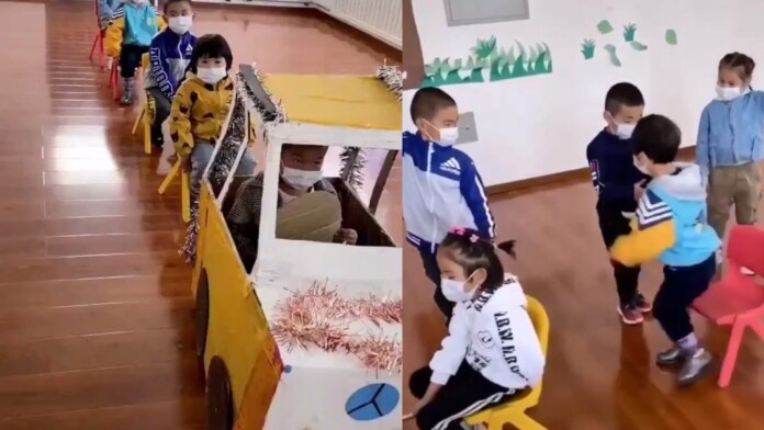 Ένα απίθανο βίντεο κάνει τον γύρο του Διαδικτύου από ένα νηπιαγωγείο στην Κίνα, όπου τα παιδιά έχουν φτιάξει ένα αυτοσχέδιο λεωφορείο με χαρτόνι και θέσεις με μικρά καρεκλάκια.