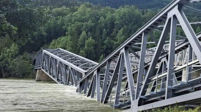 Η γέφυρα που βρίσκεται πάνω στη σιδηροδρομική γραμμή μεταξύ των πόλεων Αϊντσβόλ και Τρόντχαϊμ, είχε κλείσει για την κυκλοφορία την περασμένη εβδομάδα μετά τις πλημμύρες που προκάλεσε μια καταιγίδα.