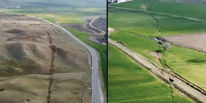 Ακόμα μία απόδειξη της φονικής έντασης του σεισμού των 7,8 Ρίχτερ που χτύπησε την Τουρκία είναι το βίντεο που δημοσίευσε το τουρκικό δίκτυο Haber Turk και δείχνει ρήγμα 500 χιλιομέτρων στην επιφάνεια της γης.