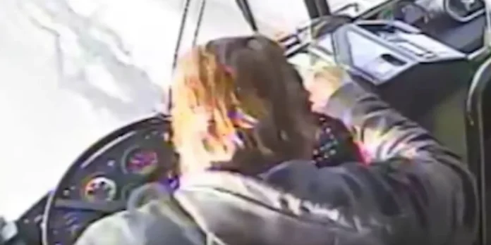 Ένας άλλος επιβάτης έτρεξε και έπιασε το τιμόνι και οδήγησε το λεωφορείο στην άκρη του δρόμου, όπως φαίνεται και από τα πλάνα που κατέγραψε κάμερα ασφαλείας στο εσωτερικό του οχήματος.