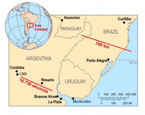 Πρόκειται για το ρεκόρ για τον κεραυνό που κάλυψε τη μεγαλύτερη οριζόντια απόσταση- ξεπέρασε τα 700 χλμ.- και αυτόν με τη μεγαλύτερη διάρκεια, που καταγράφηκαν στη Βραζιλία το 2018 και την Αργεντινή το 2019, αντίστοιχα.