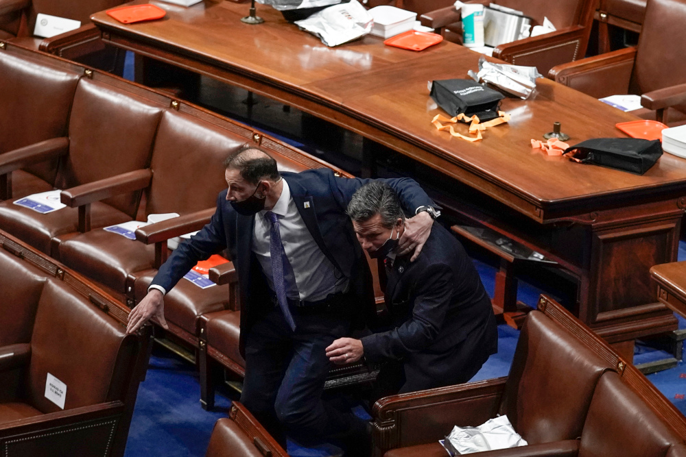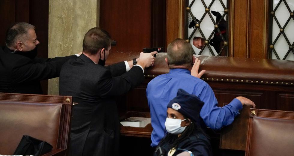 Οι εικόνες που έκαναν τον γύρο του κόσμου ήταν σοκαριστικές, καθώς άνδρες της ασφάλειας με τα όπλα στα χέρια σημάδευαν τους διαδηλωτές, προσπαθώντας να προστατέψουν βουλευτές και γερουσιαστές από την οργή τους και να τους φυγαδεύσουν πριν γίνει το κακό.