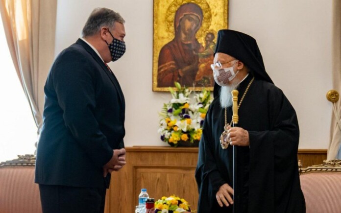 Με τον Οικουμενικό Πατριάρχη Βαρθολομαίο συναντήθηκε, στο Φανάρι, ο Αμερικανός υπουργός Εξωτερικών Μάικ Πομπέο, στο πλαίσιο της περιοδείας που πραγματοποιεί σε Ευρώπη και Μέση Ανατολή.