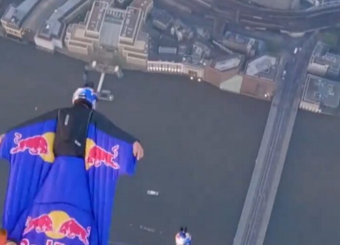 Οι δύο αλεξιπτωτιστές ο Μάρκο Φουρστ, και ο Μάρκο Βάλτενσπιλ πήδηξαν από ένα ελικόπτερο που βρισκόταν στα 914 μέτρα πάνω από το Λονδίνο το πρωί της Κυριακής.