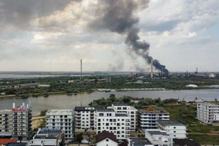Μαύροι καπνοί έχουν σκεπάσει τον ουρανό πάνω από το διυλιστήριο, όπως φαίνεται σε βίντεο και φωτογραγίες που κυκλοφόρησαν στα μέσα κοινωνικής δικτύωσης.