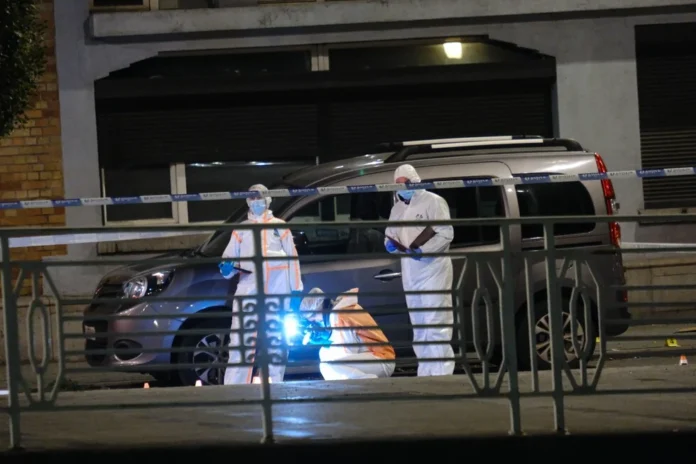 Σε ένα ερασιτεχνικό βίντεο, καταγράφεται ένας άνδρας με ένα φωσφορίζον πορτοκαλί μπουφάν, να παρκάρει ένα σκούτερ και να χρησιμοποιήσει ένα αυτόματο όπλο.